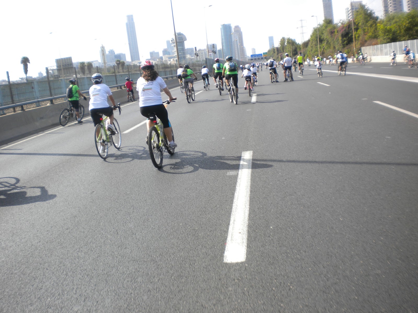 My wife, daughter and I joined the crowds and road the 22km track around Tel Aviv. The starting line was at the ‘Rabin square’ next to the city hall building. Energizing music filled the air, and thousands of riders waited in line for their turn to start the ride. We rode north first, then headed east and then got on the ‘Ayalon’ highway heading south. It was surreal to see thousands of cyclists riding on what is typically the busiest highway in Israel… We then turned west and rode back north along the beach, finally returning to the Rabin square.